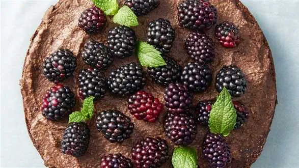 Awokado przekrawamy na pół, usuwamy pestki i wyjmujemy miąższ, który miksujemy z pozostałymi składnikami kremu. Krem wykładamy na ostudzone ciasto.
