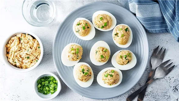 Jajka faszerowane tuńczykiem • przepis • składniki • przygotowanie