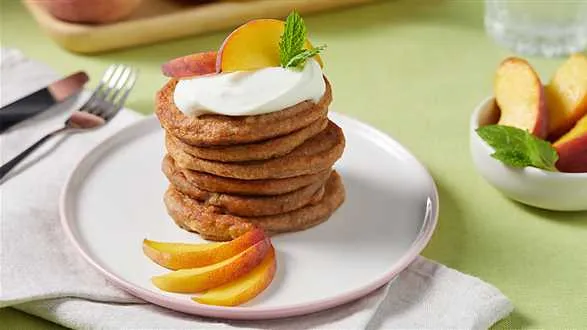 Placki bananowe z jogurtem i brzoskwiniami • przepis • składniki • przygotowanie