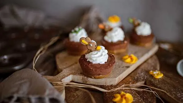 Ptysie z musem czekoladowo-piernikowym i sosem z gorących wiśni